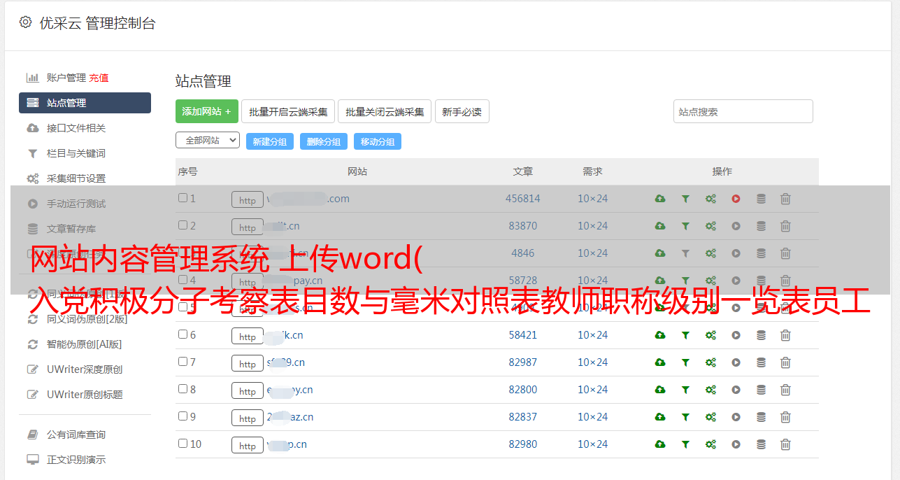 网站内容管理系统 上传word( 入党积极分子考察表目数与毫米对照表教师职称级别一览表员工考核)