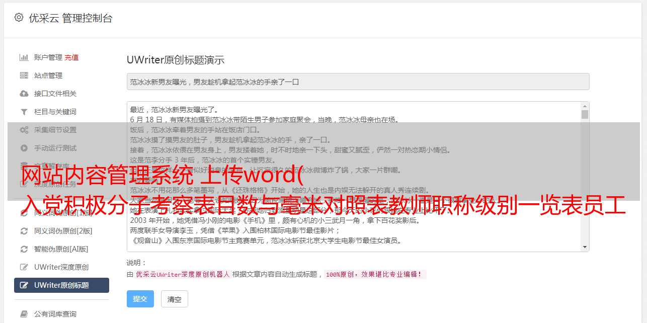 优采云 发布时间: 2021-11-20 17:18网站内容管理系统 上传word(