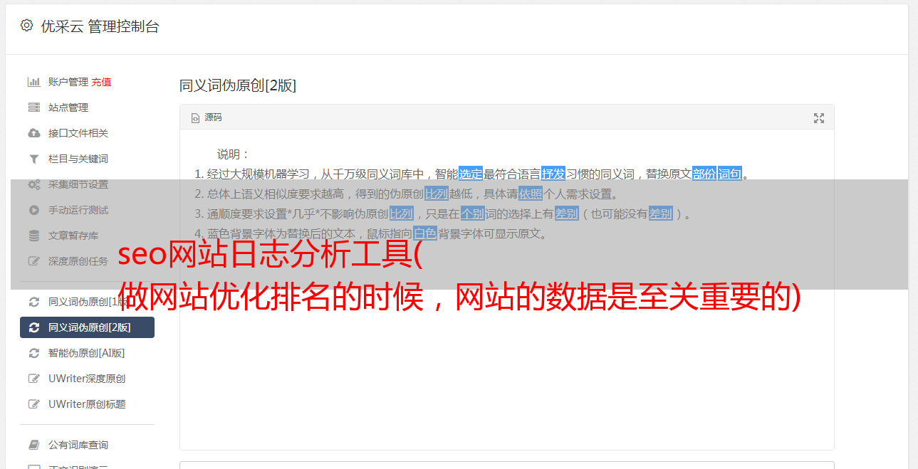 优采云 发布时间: 2021-11-21 04:01seo网站日志分析工具(