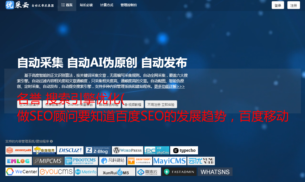 踏入SEO优化这条线,必须学习高超的网站SEO优化技巧和方法,才能成为贵公司不可或缺的SEO顾问,实现自身价值,共创双赢为您的公司和您自己。要做的事情。做SEO顾问,了解百度SEO发展趋势,百度移动搜索优化。