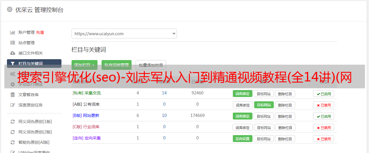 优采云 发布时间: 2021-11-21 06:08搜索引擎优化(seo)-刘志军从入门到精通视频教程(全14讲)(网站优化前期至关重要的几种常见问题及解决办法!