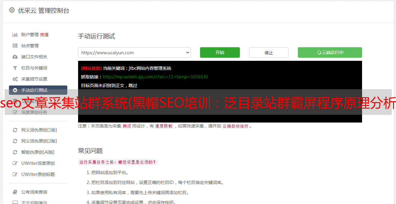 优采云 发布时间: 2021-11-21 07:19seo文章采集站群系统(黑帽SEO培训:泛目录站群霸屏程序原理分析!