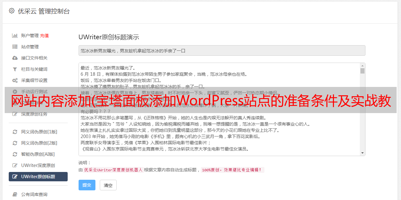 优采云 发布时间: 2021-11-21 08:24网站内容添加(宝塔面板添加WordPress站点的准备条件及实战教程)
