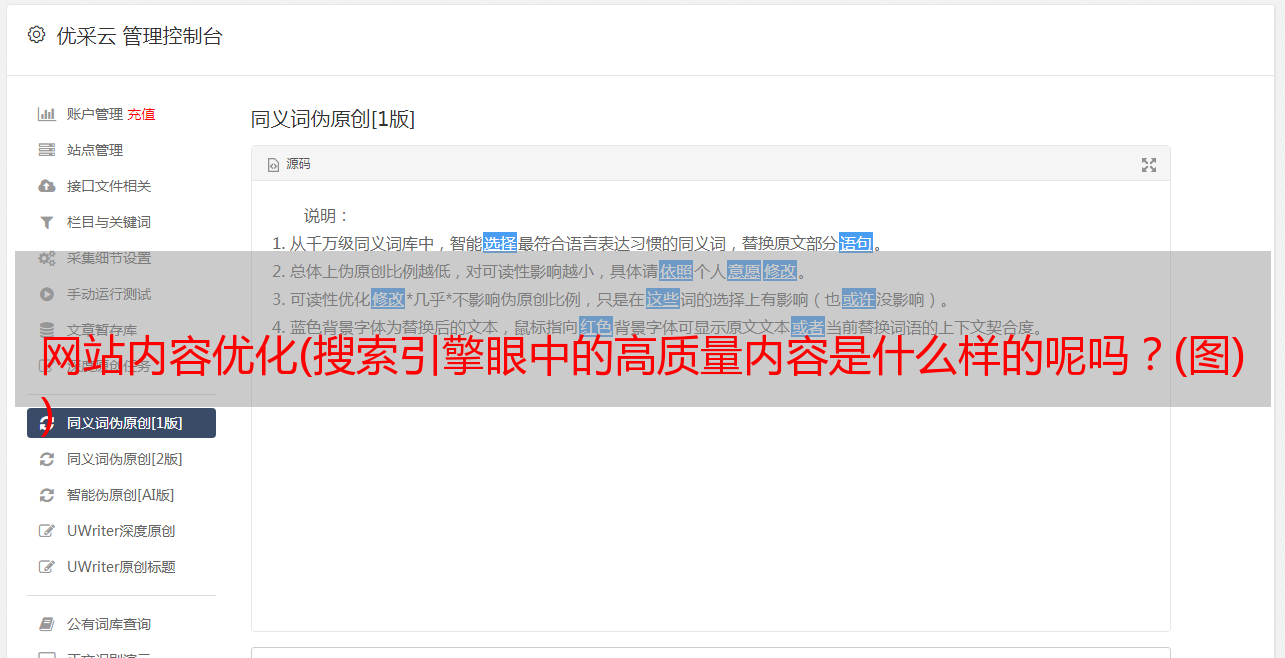 优采云 发布时间: 2021-11-21 10:04网站内容优化(搜索引擎眼中的高质量内容是什么样的呢吗?(图)