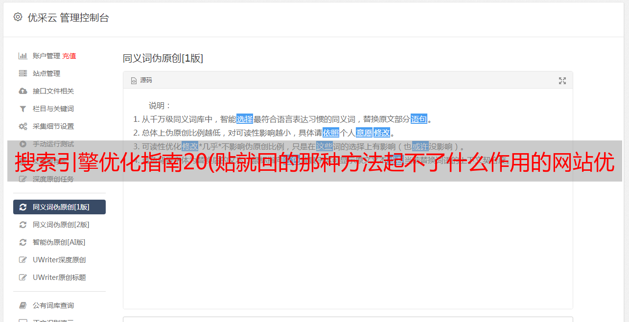 优采云 发布时间: 2021-11-21 15:13搜索引擎优化指南20(贴就回的那种方法起不了什么作用的网站优化公司推广)