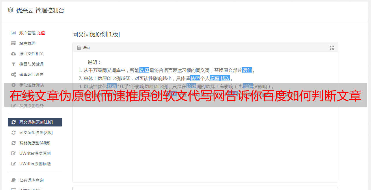 优采云 发布时间: 2021-11-21 17:13在线文章伪原创(而速推原创软文代写网告诉你百度如何判断文章质量)