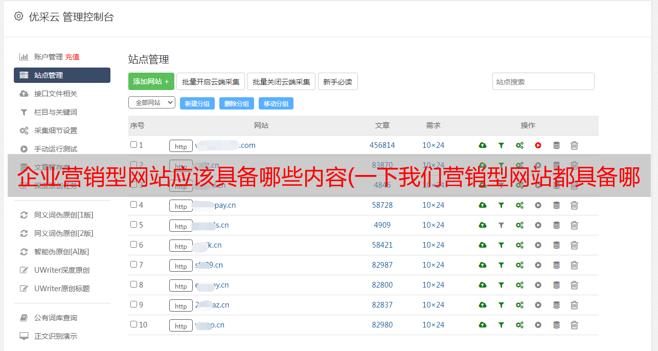 优采云 发布时间: 2021-11-21 17:18企业营销型网站应该具备哪些内容(一下我们营销型网站都具备哪些功能和优势?方便大家更好)