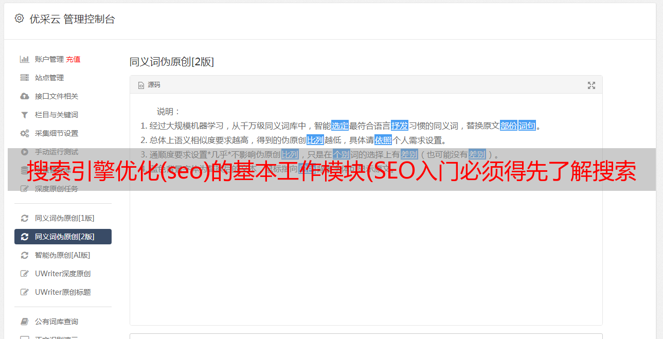 优采云 发布时间: 2021-11-21 18:01搜索引擎优化(seo)的基本工作模块(SEO入门必须得先了解搜索引擎得工作原理是什么?)