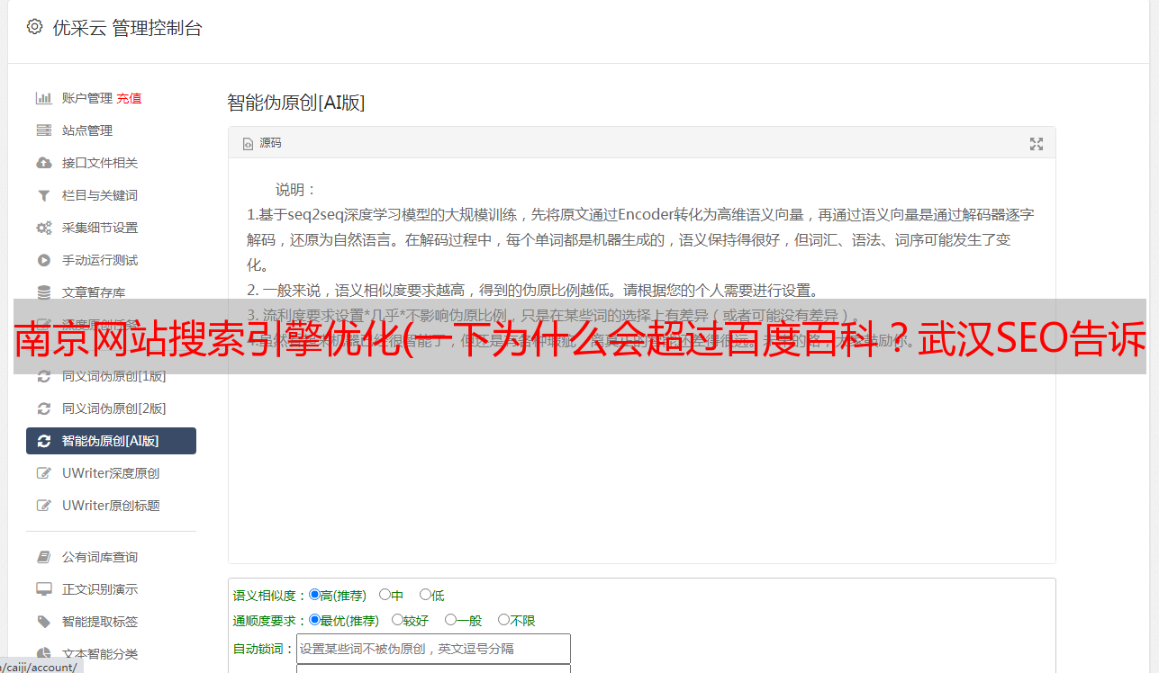 优采云 发布时间: 2021-11-21 18:19南京网站搜索引擎优化(一下为什么会超过百度百科?武汉SEO告诉你怎么做到