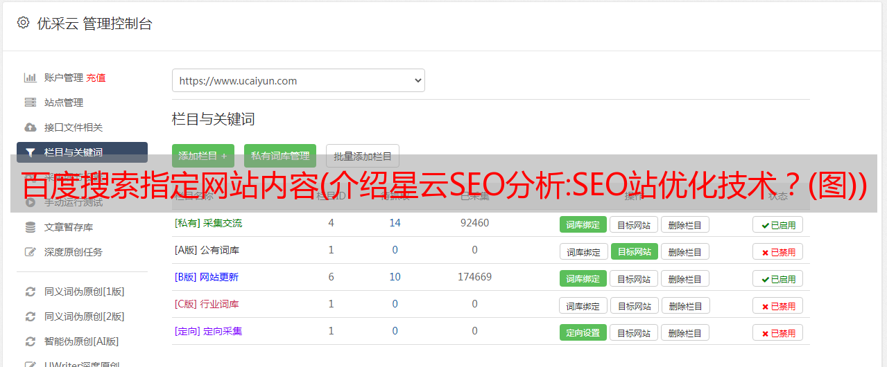 优采云 发布时间: 2021-11-21 22:06百度搜索指定网站内容(介绍星云SEO分析:SEO站优化技术?(图))