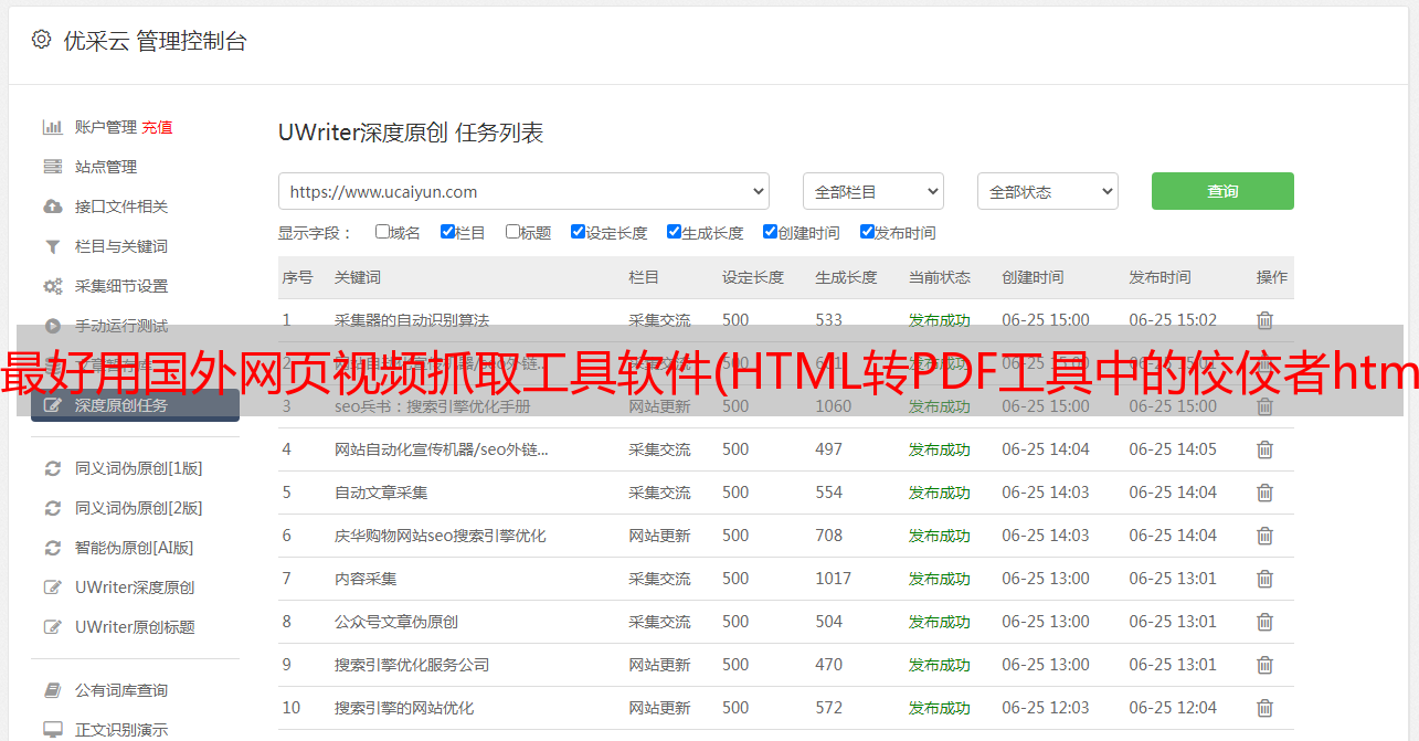 优采云 发布时间: 2021-11-22 00:03最好用国外网页视频抓取工具软件(HTML转PDF工具中的佼佼者html2pdf)