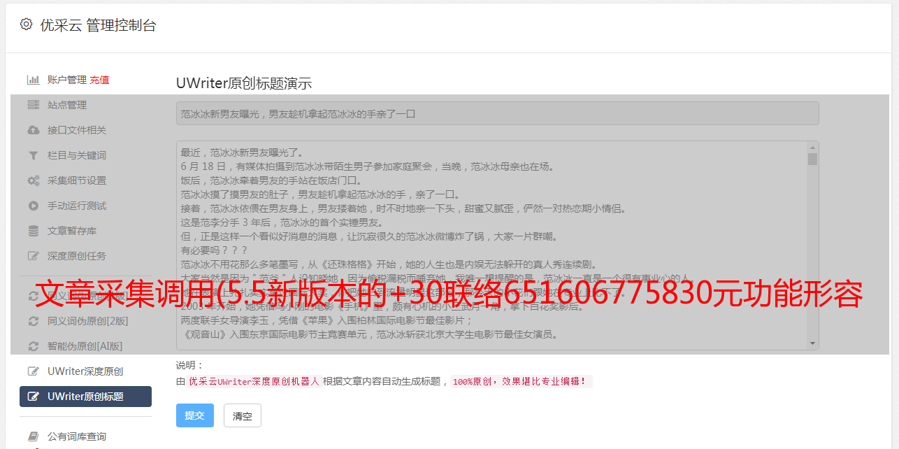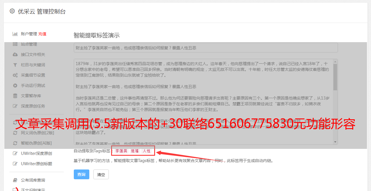 文章采集调用(5.5新版本的+30联络651606775830元功能形容 )