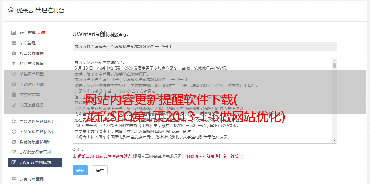 网站内容更新提醒软件下载( 龙欣SEO第1页2013-1-6做网站优化)