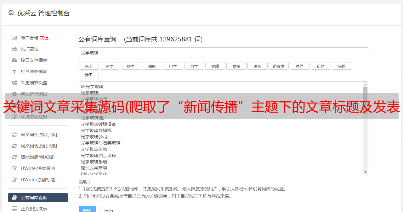 优采云 发布时间: 2021-11-22 01:16关键词文章采集源码(爬取了“新闻传播”主题下的文章标题及发表时间