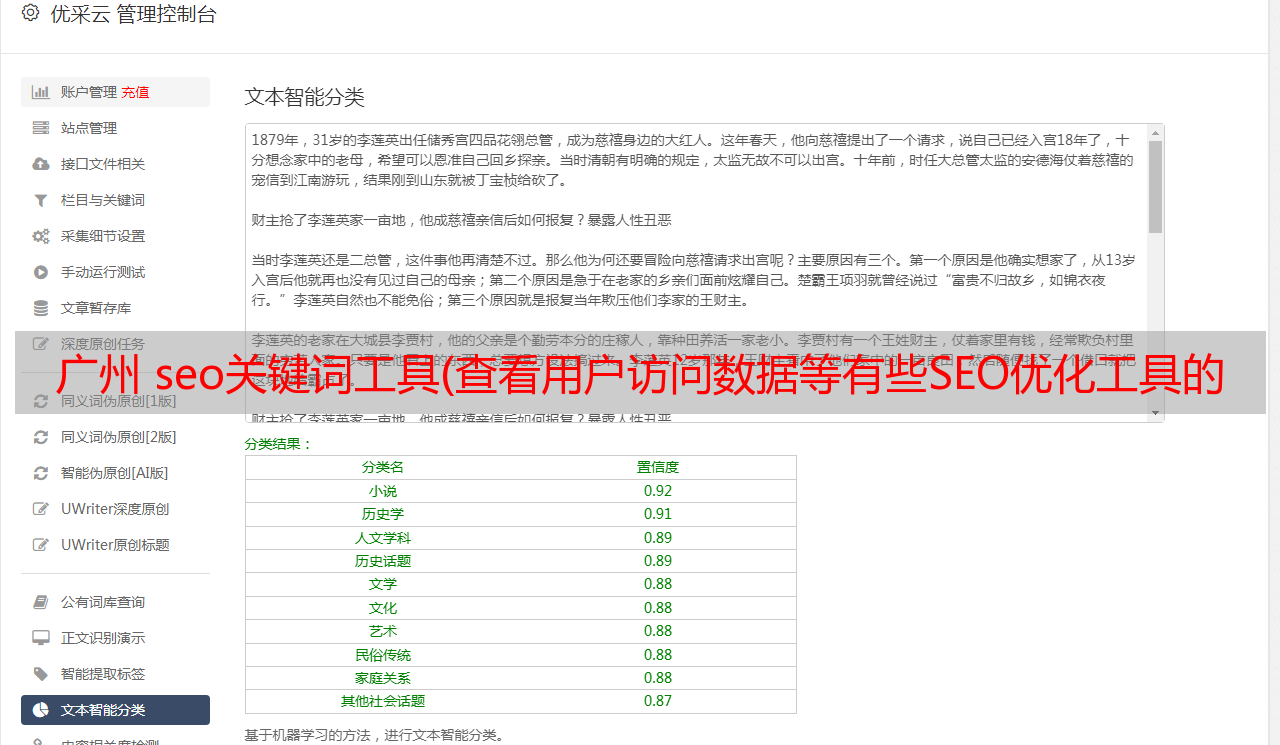 优采云 发布时间: 2021-11-22 02:15广州 seo关键词工具(查看用户访问数据等有些SEO优化工具的优势找出核心)