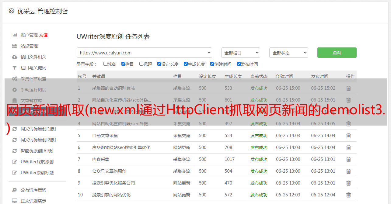 优采云 发布时间: 2021-11-22 03:01网页新闻抓取(new.xml通过HttpClient抓取网页新闻的demolist3.
