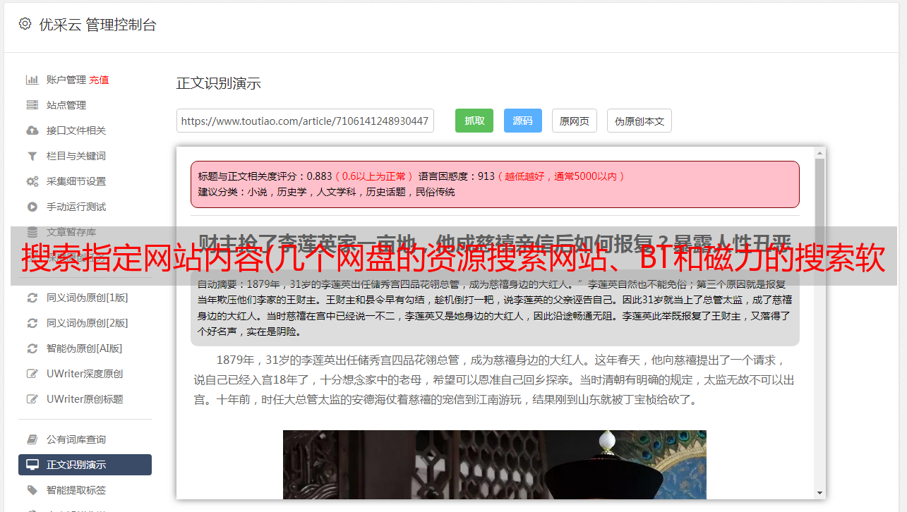 优采云 发布时间: 2021-11-22 07:09搜索指定网站内容(几个网盘的资源搜索网站、BT和磁力的搜索软件)