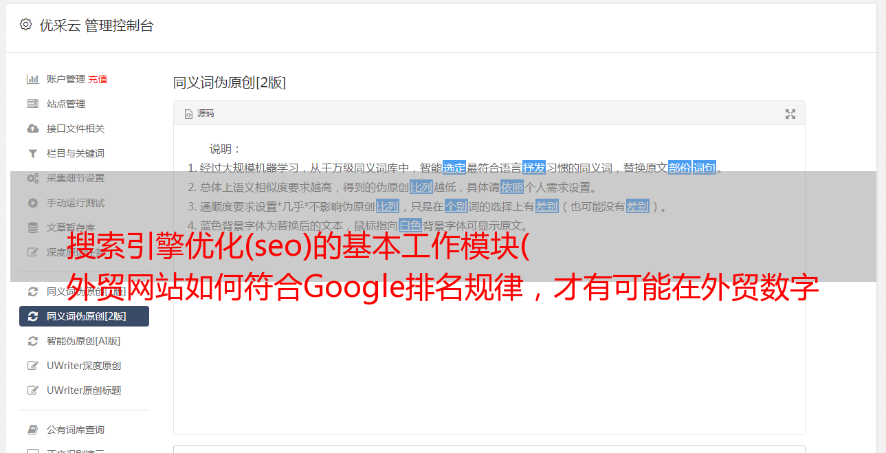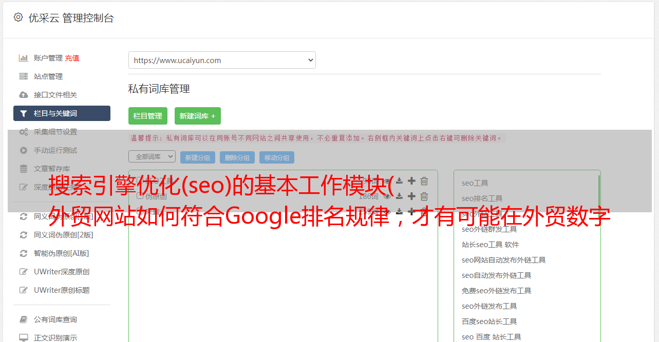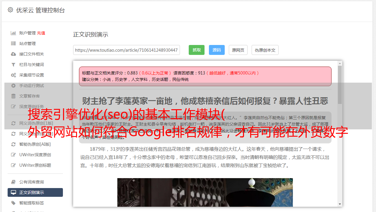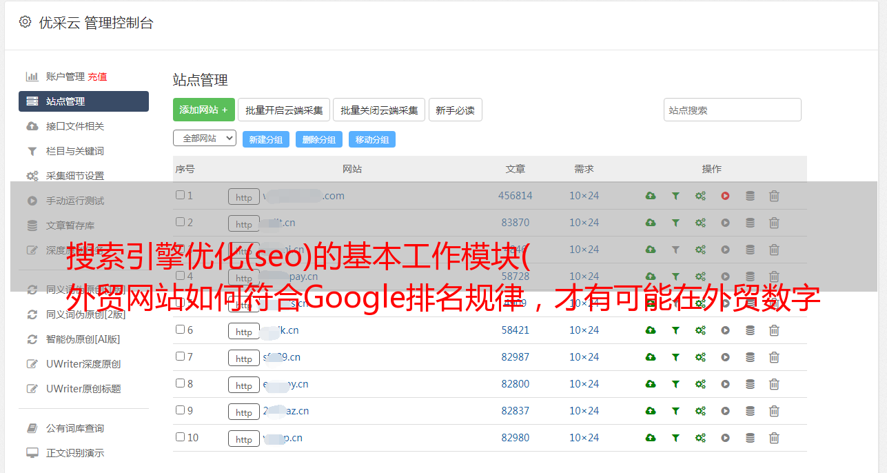 优采云 发布时间: 2021-11-22 11:12搜索引擎优化(seo)的基本工作模块(