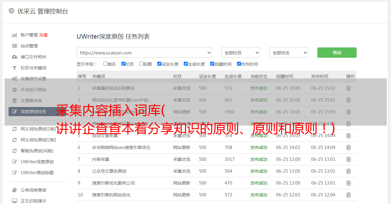 优采云 发布时间: 2021-11-22 12:07采集内容插入词库(