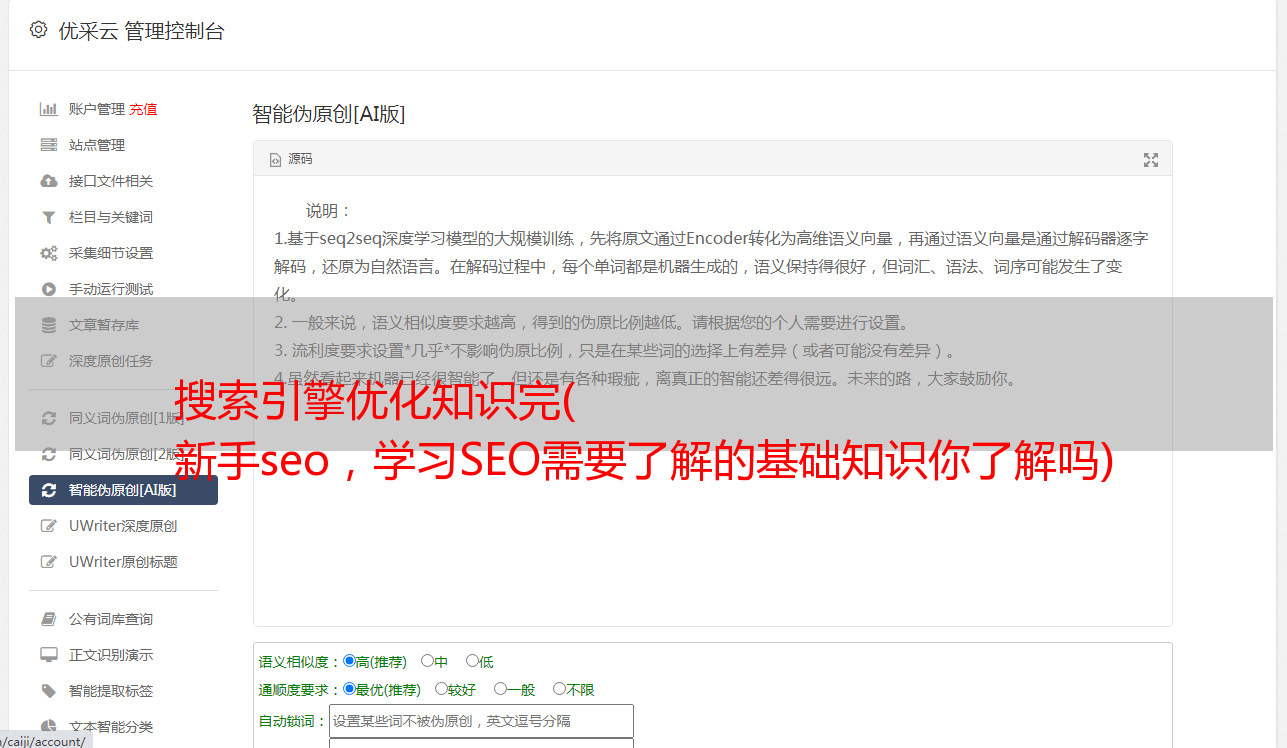 优采云 发布时间: 2021-11-22 14:00搜索引擎优化知识完(