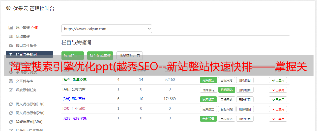 优采云 发布时间: 2021-11-22 14:13淘宝搜索引擎优化ppt(越秀SEO--新站整站快速快排——掌握关键算法)