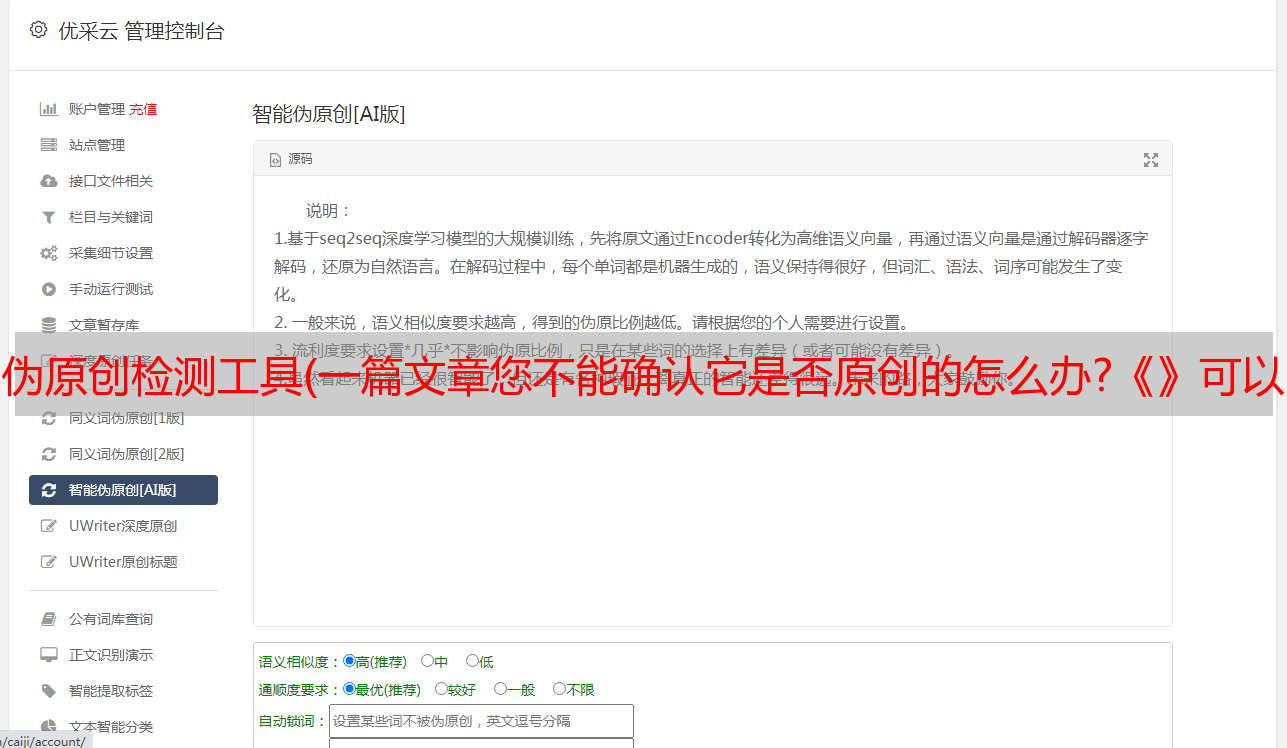 优采云 发布时间: 2021-11-22 16:04伪原创检测工具(一篇文章您不能确认它是否原创的怎么办?《》可以帮您