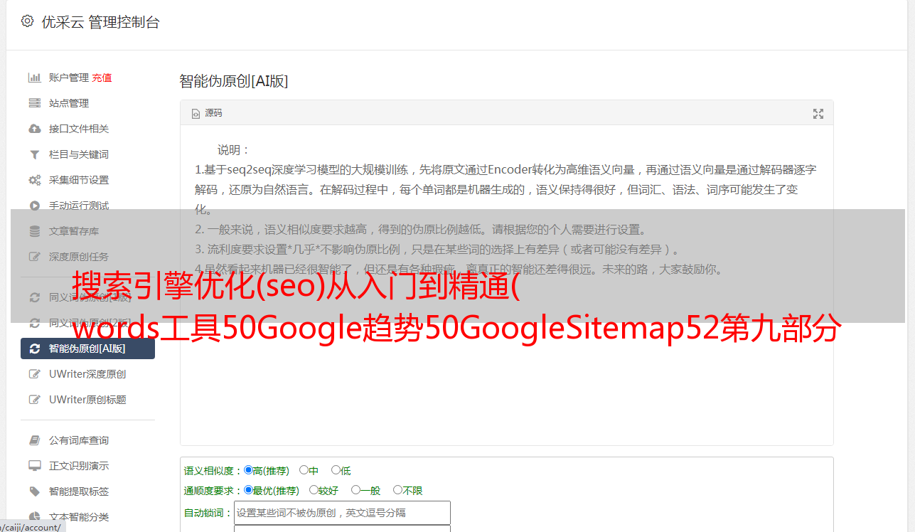 优采云 发布时间: 2021-11-22 21:19搜索引擎优化(seo)从入门到精通(