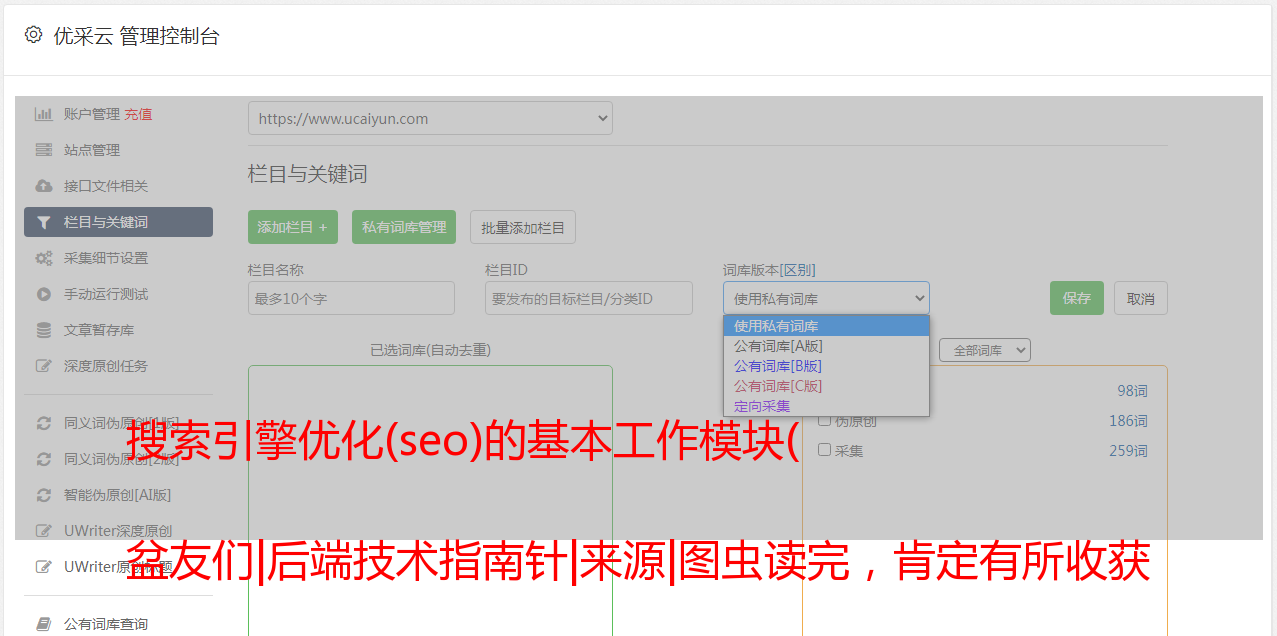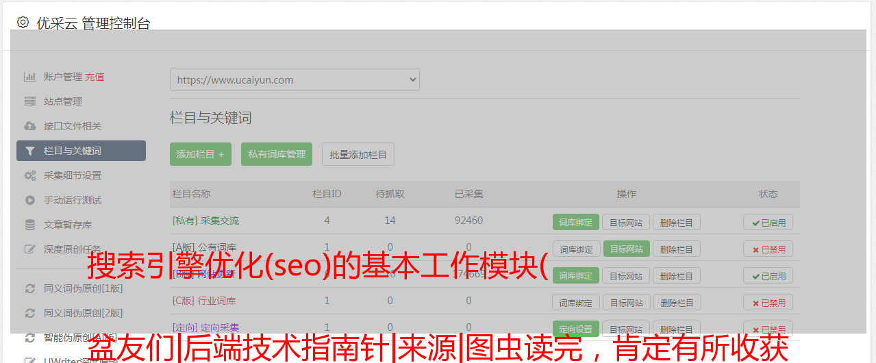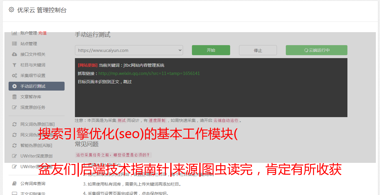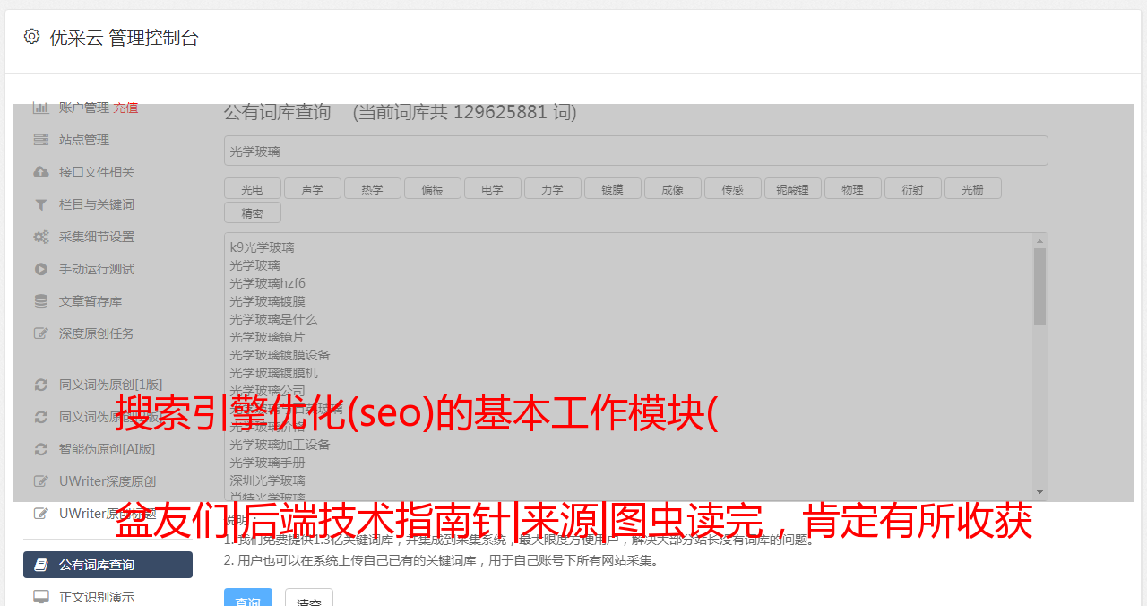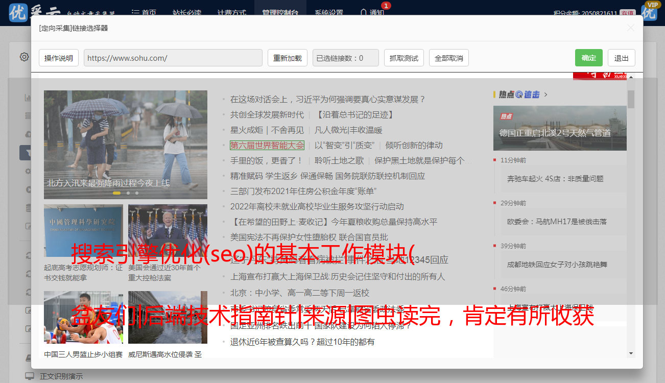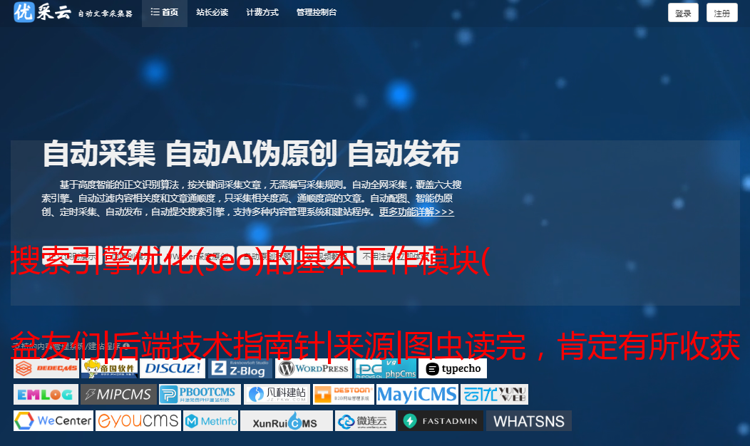 优采云 发布时间: 2021-11-22 23:32搜索引擎优化(seo)的基本工作模块(