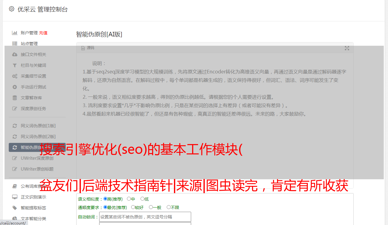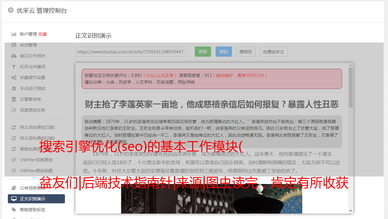搜索引擎优化(seo)的基本工作模块( 盆友们|后端技术指南针|来源|图虫读完,肯定有所收获 )