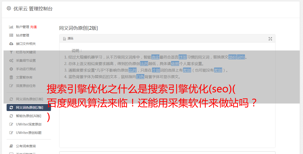 搜索引擎优化之什么是搜索引擎优化(seo)( 百度飓风算法来临!还能用采集软件来做站吗? )