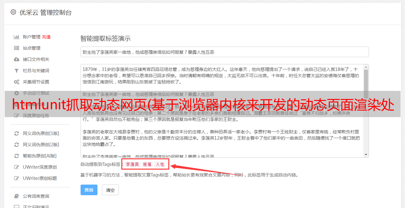 优采云 发布时间: 2021-11-23 03:23htmlunit抓取动态网页(基于浏览器内核来开发的动态页面渲染处理服务器(组图))