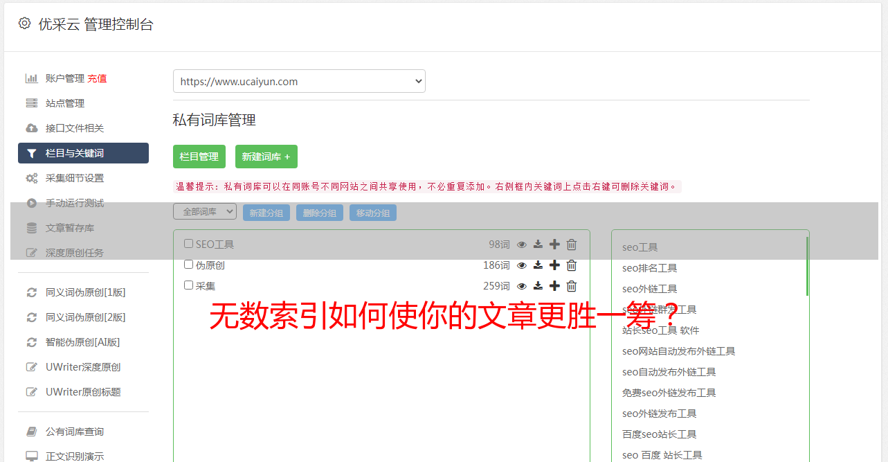 多次使用相同和相似的关键词,编写自己的网站,然后看看会发生什么。