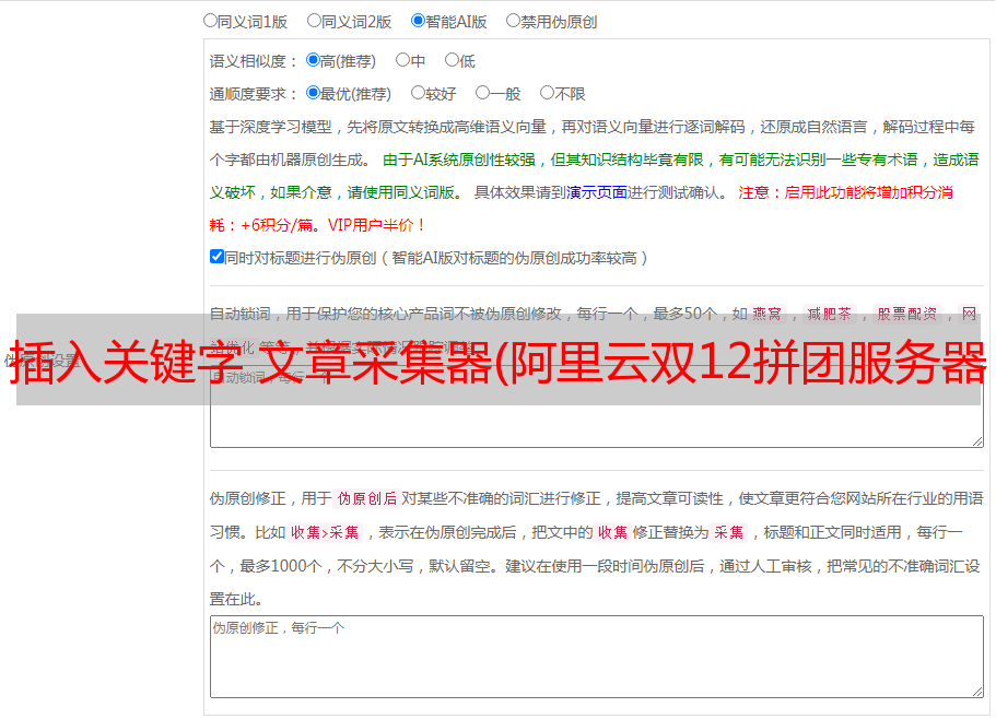 插入关键字 文章采集器(阿里云双12拼团服务器优化活动1核2G/1年/89元)