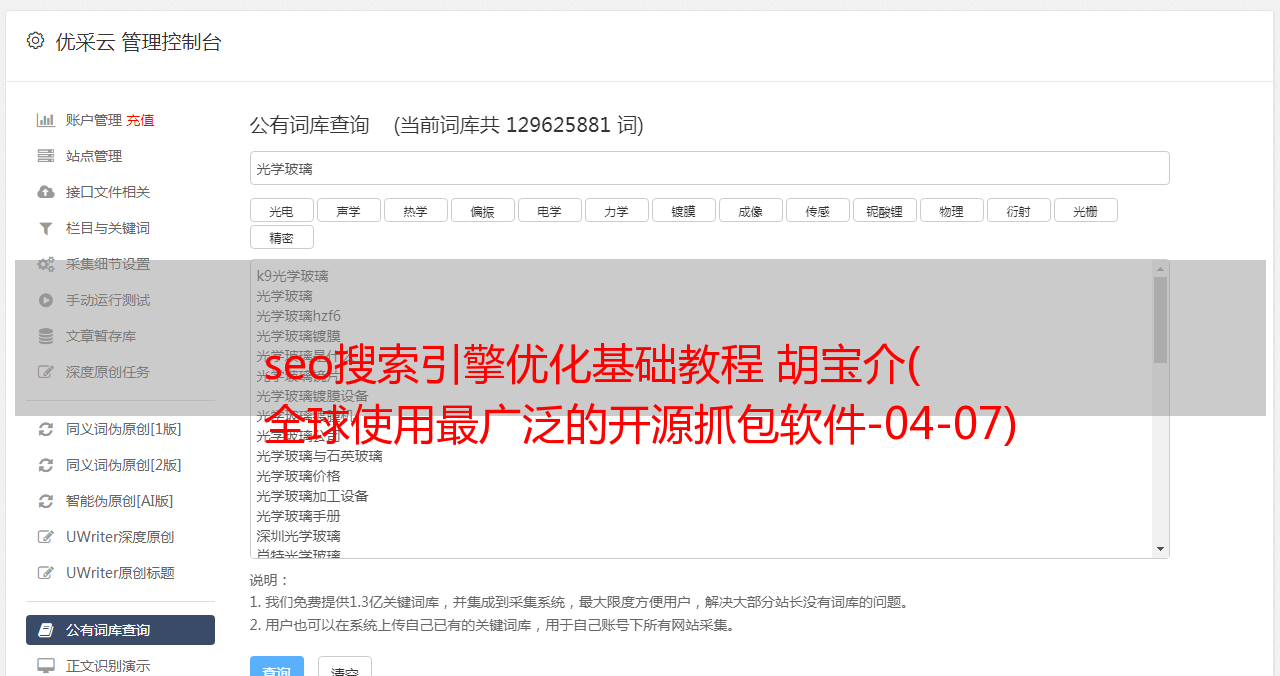 优采云 发布时间: 2021-11-23 11:00seo搜索引擎优化基础教程 胡宝介(