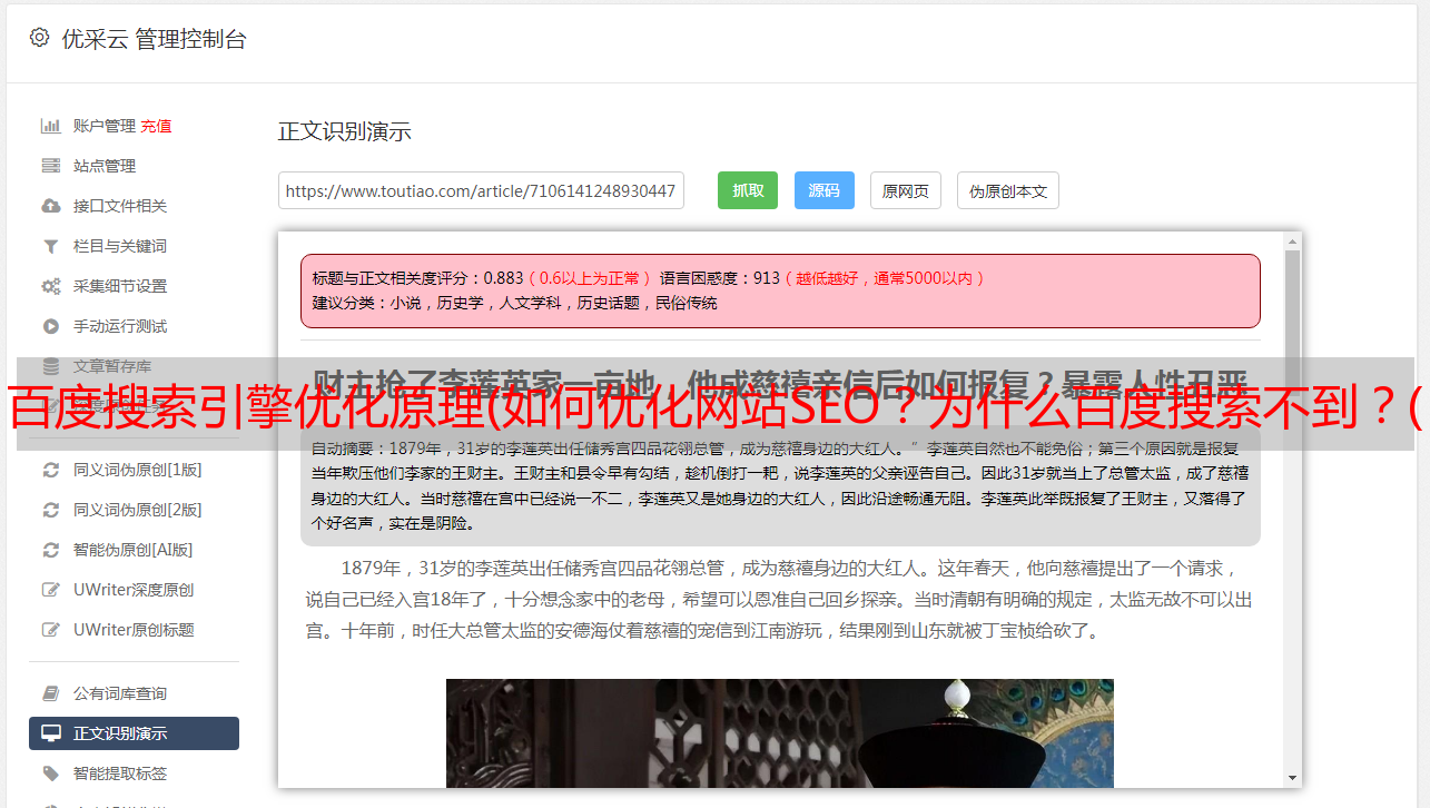 优采云 发布时间: 2021-11-23 11:01百度搜索引擎优化原理(如何优化网站SEO?为什么百度搜索不到?(图)