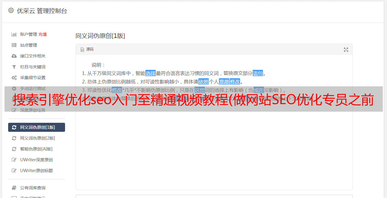 优采云 发布时间: 2021-11-23 14:19搜索引擎优化seo入门至精通视频教程(做网站SEO优化专员之前的几大优势)