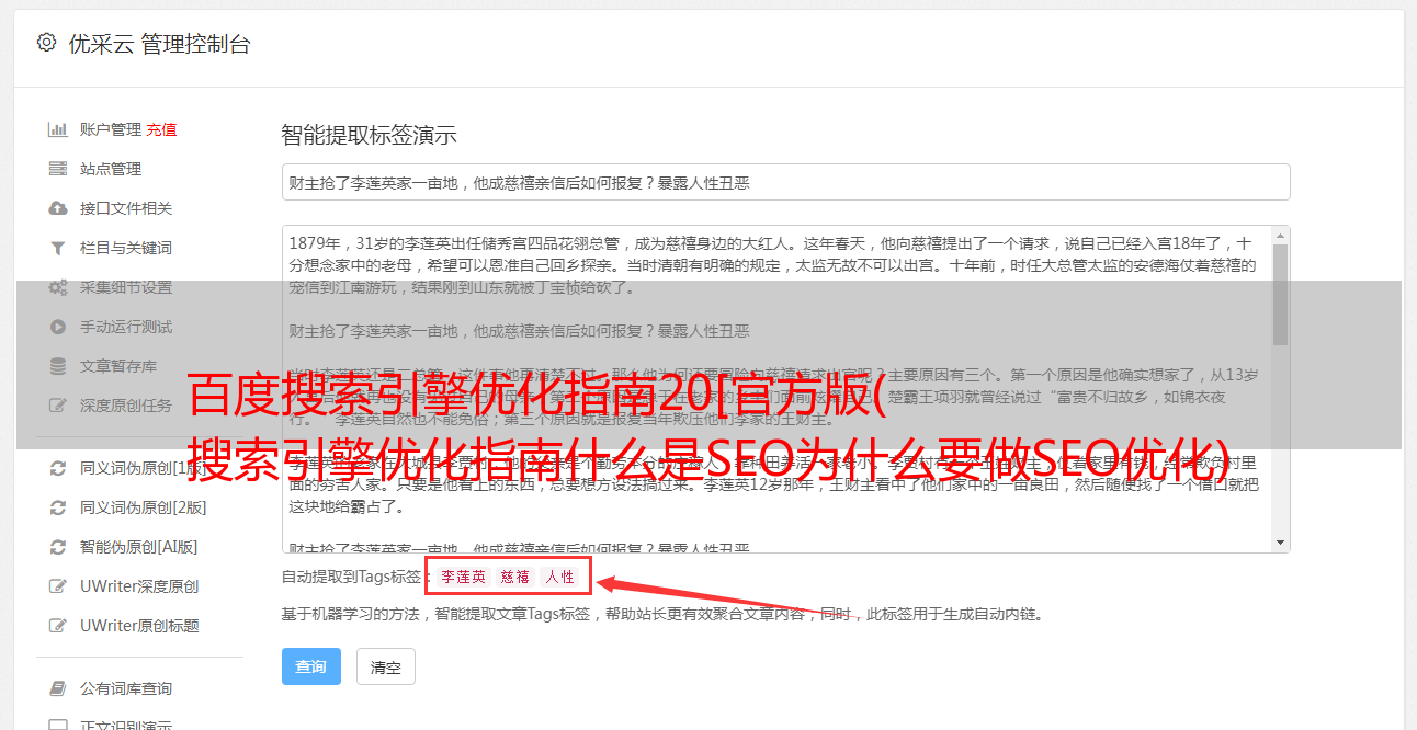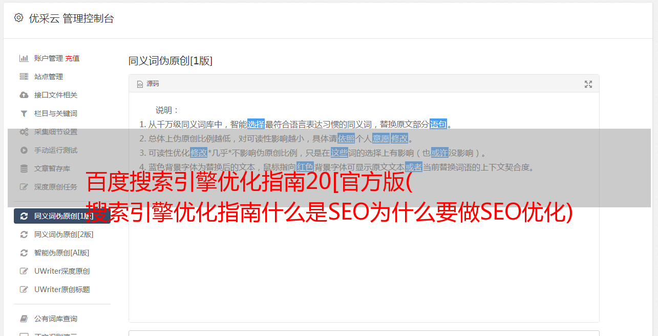 优采云 发布时间: 2021-11-23 15:16百度搜索引擎优化指南20[官方版(