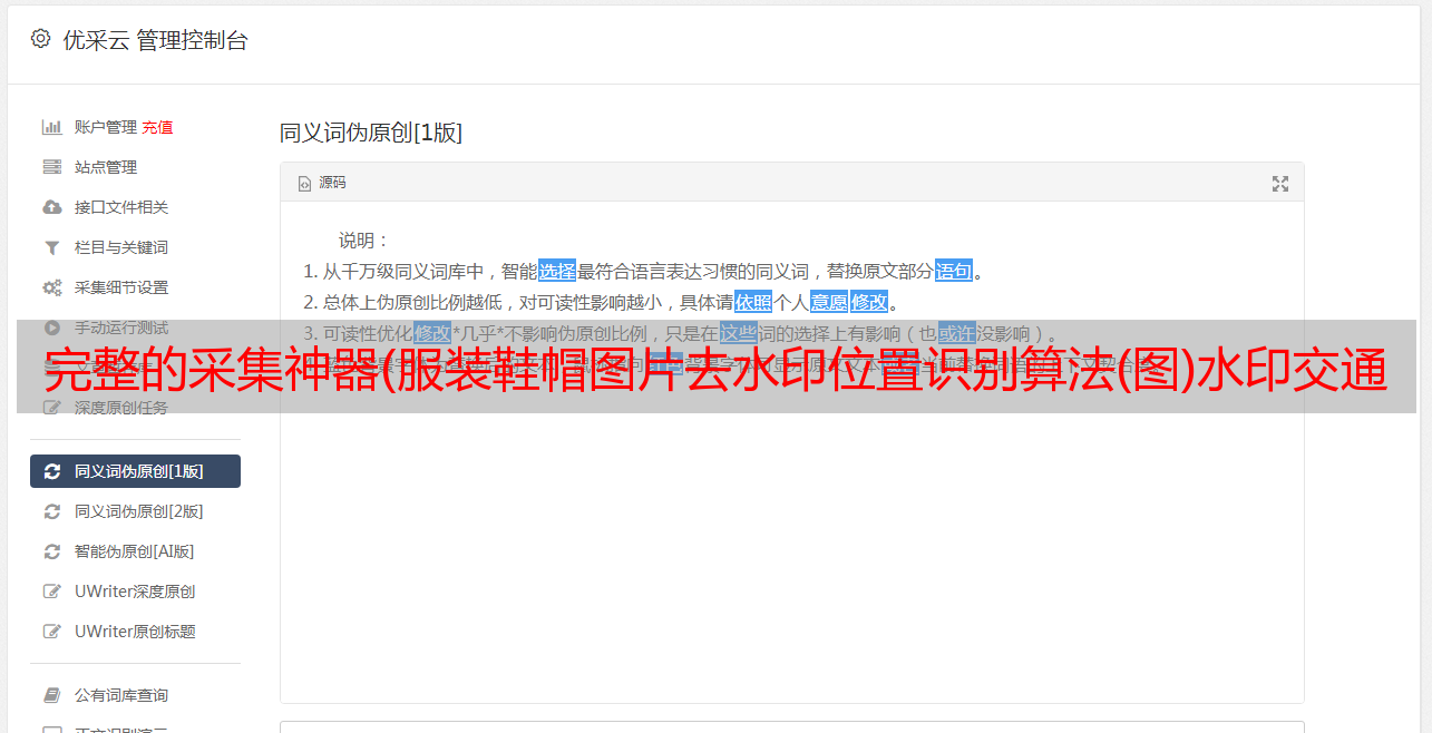 完整的采集神器(服装鞋帽图片去水印位置识别算法(图)水印交通照片)