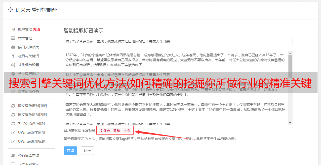 在我们深入挖掘关键词之后,我们会在我们的网站上进行合理的布局。当然,当我们的网站被搜索引擎收录搜索到之后,我们就可以继续关键词,这样其他人在搜索这个关键词的时候,就可以找到我们的< @网站 在搜索引擎中。