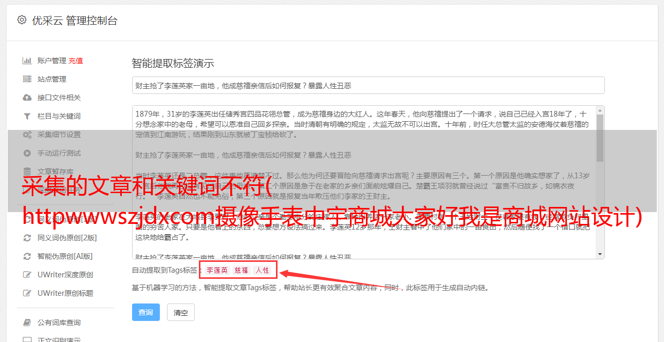 采集的文章和关键词不符( httpwwwszjdxcom摄像手表中宇商城大家好我是商城网站设计)