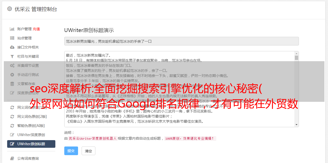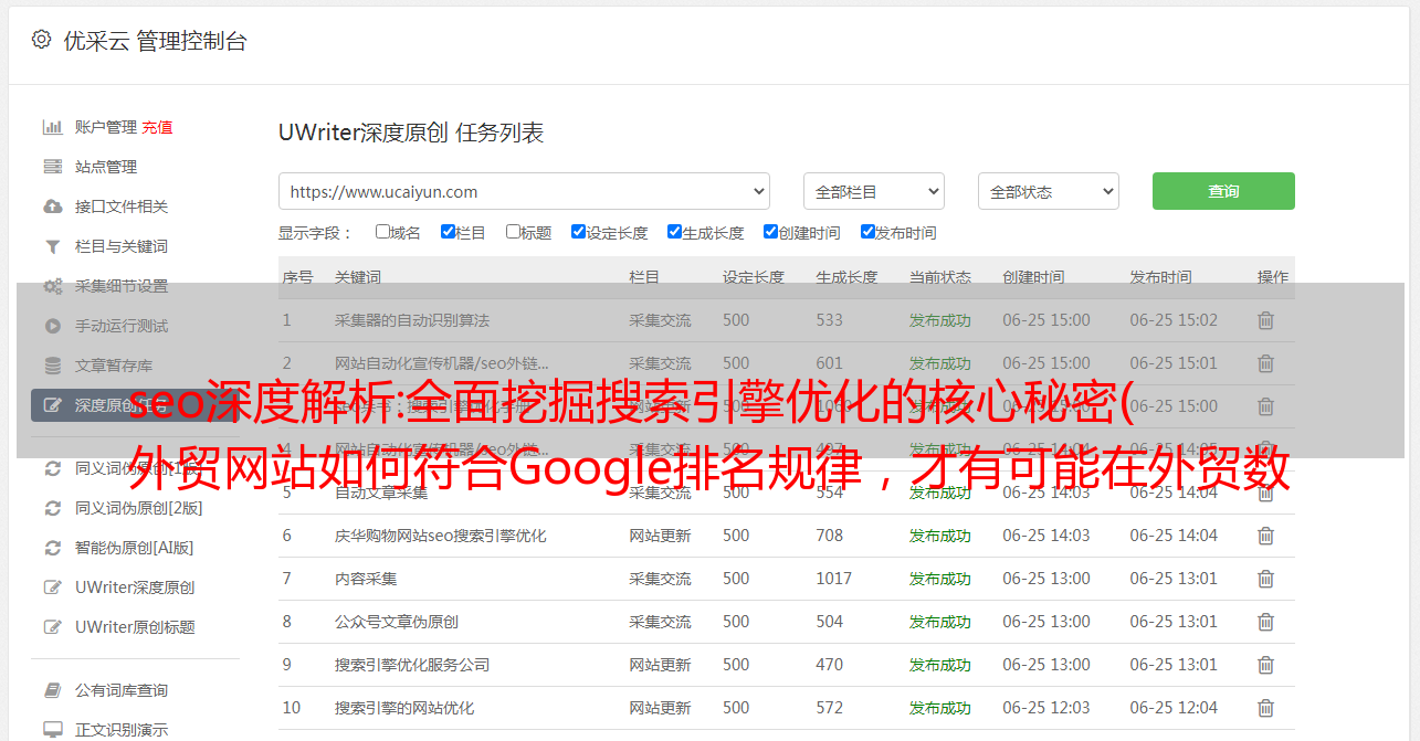 优采云 发布时间: 2021-11-24 12:10seo深度解析:全面挖掘搜索引擎优化的核心秘密(