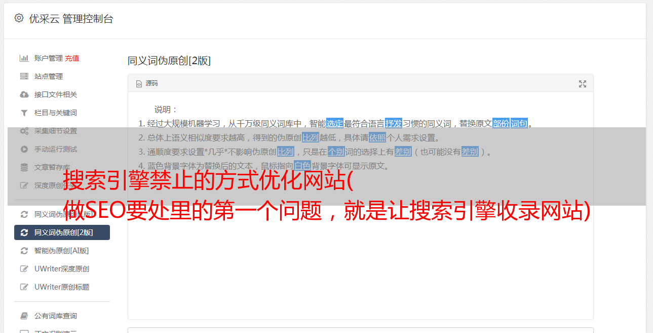 优采云 发布时间: 2021-11-24 15:01搜索引擎禁止的方式优化网站(