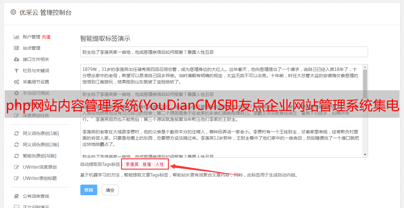 优采云 发布时间: 2021-11-24 19:07php网站内容管理系统(YouDianCMS即友点企业网站管理系统集电脑站+APP+小程序