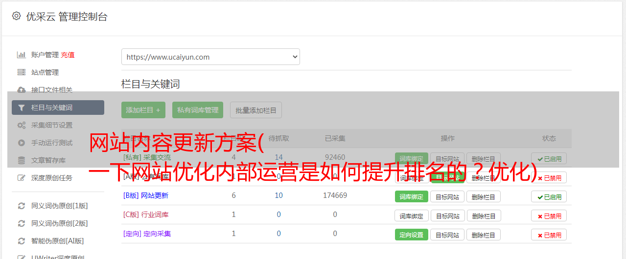 优采云 发布时间: 2021-11-24 19:10网站内容更新方案(