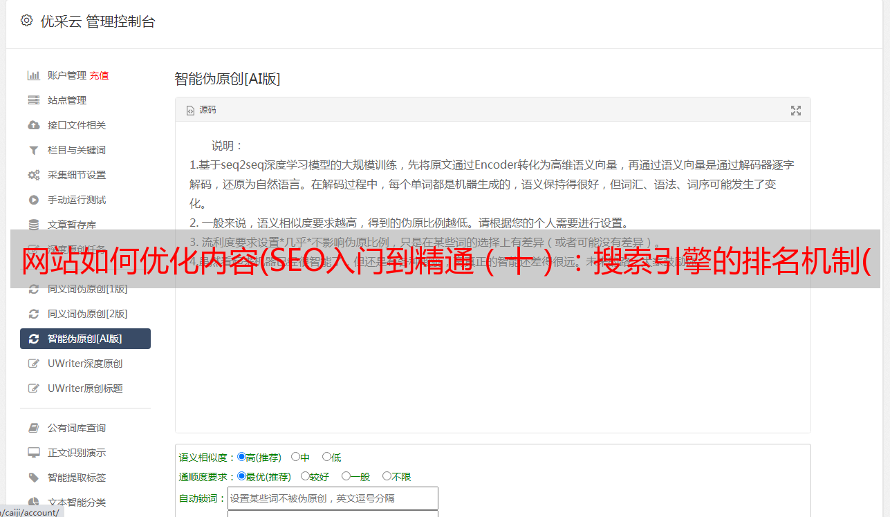 优采云 发布时间: 2021-11-24 19:21网站如何优化内容(SEO入门到精通(十):搜索引擎的排名机制(组图))