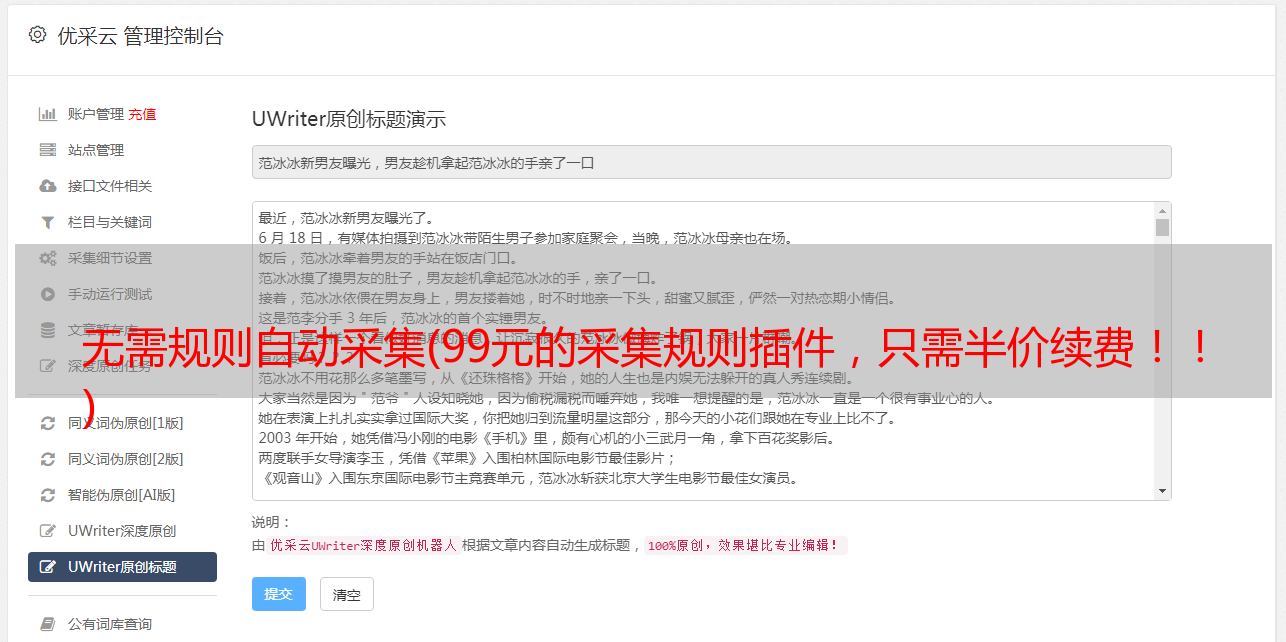无需规则自动采集(99元的采集规则插件,只需半价续费!! )