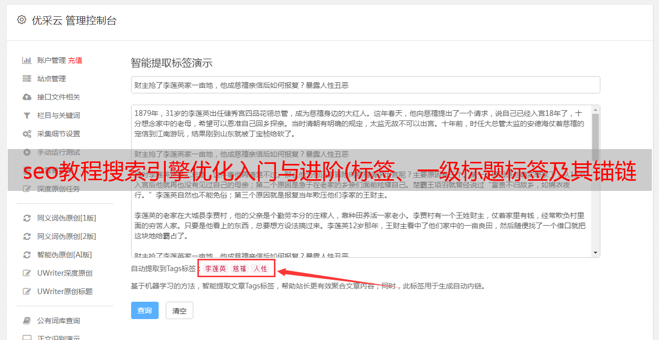 优采云 发布时间: 2021-11-25 03:03seo教程搜索引擎优化入门与进阶(标签、一级标题标签及其锚链标签的配合使用方法介绍)