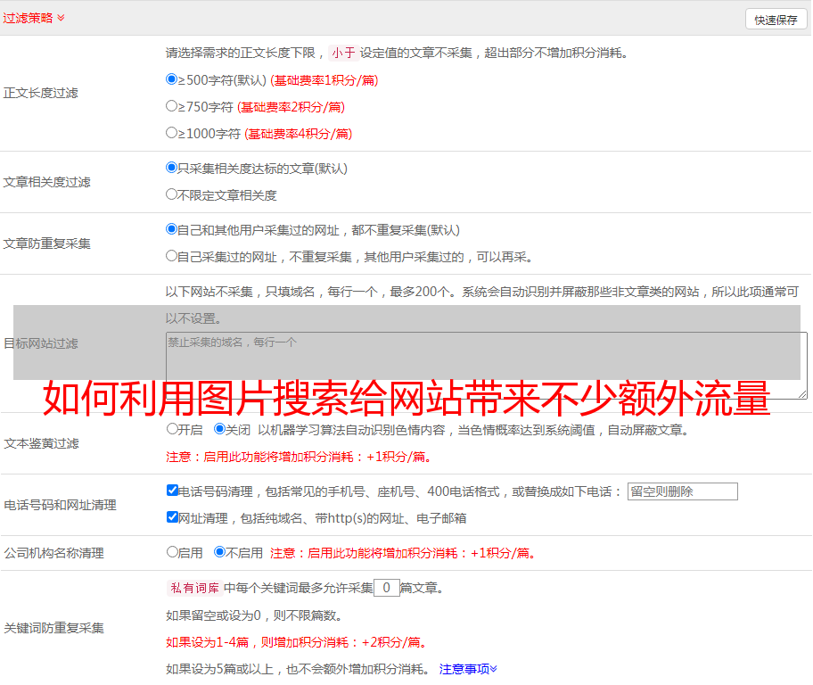 但是,如果条件允许(例如独立服务器,足够的流量),则将图片存储在自己的网站空间中,而是可以使用搜索引擎的图片搜索为自己带来很多额外的流量。这里的搜索引擎指的是图像搜索,而不是百度,因为百度使用热链接机制,并且其图像搜索基本上不会给网站带来任何页面流量。