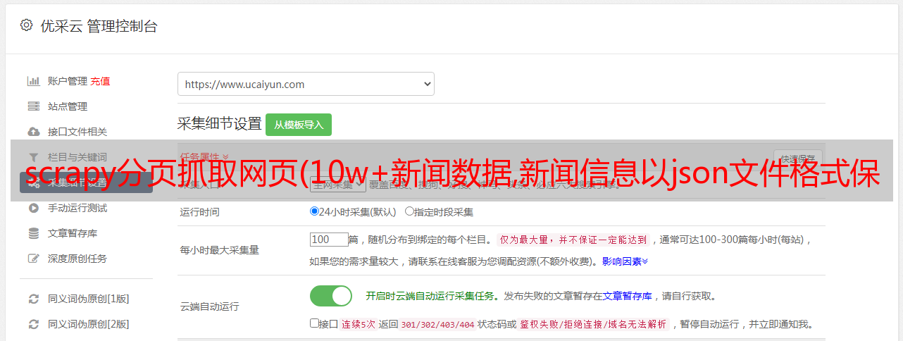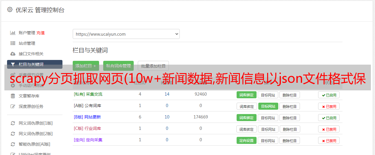 优采云 发布时间: 2021-11-25 04:21scrapy分页抓取网页(10w+新闻数据,新闻信息以json文件格式保存)