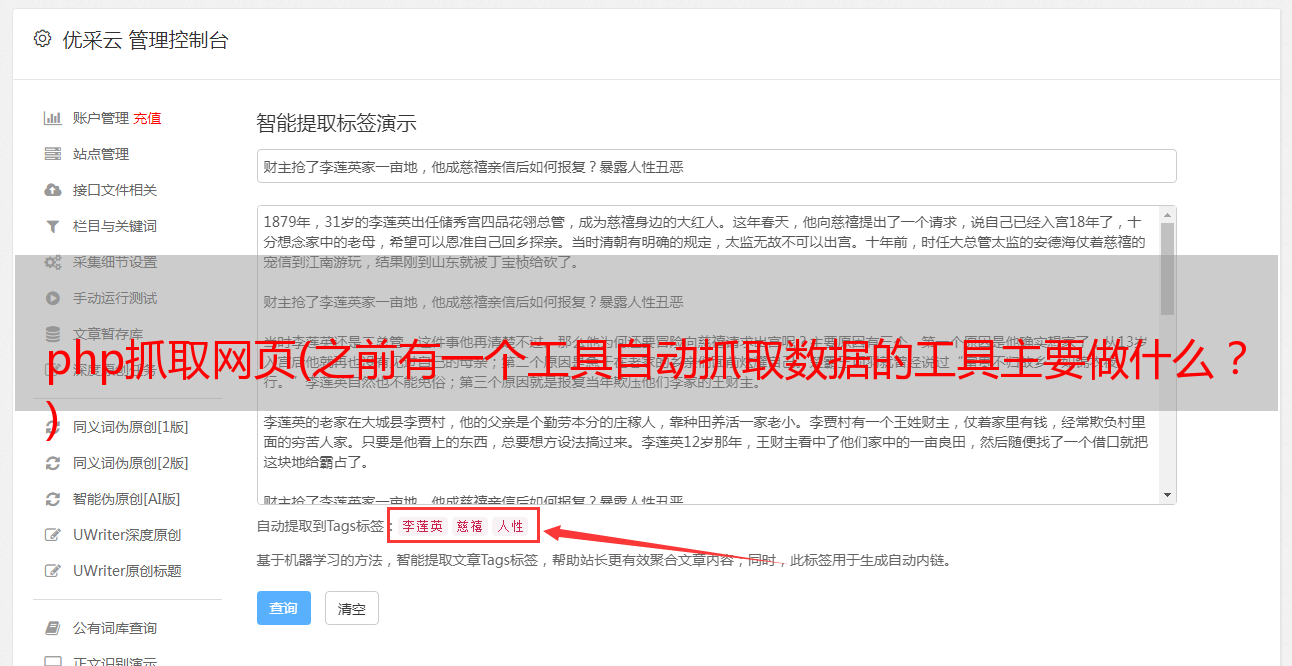 优采云 发布时间: 2021-11-25 06:06php抓取网页(之前有一个工具自动抓取数据的工具主要做什么?